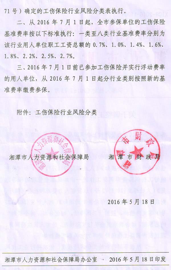 《關(guān)于調(diào)整工傷保險費(fèi)率的通知》